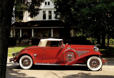 This 1929 Duesenberg Model J is a Non-Disappearing Convertible Coupe by Murphy. It was originally delivered to John R. MacKinney of New York City, a wealthy businessman and partner of John D. Rockefeller in Standard Oil. Both men held seats on the New York Stock Exchange, and MacKinney also ran his own firm, MacKinney & Weicher.